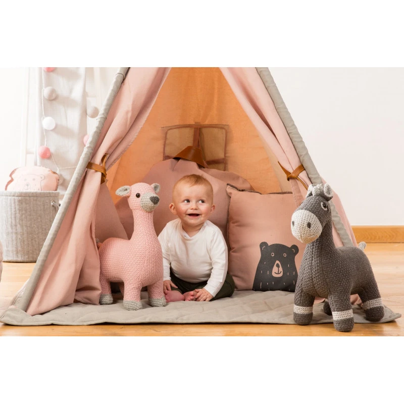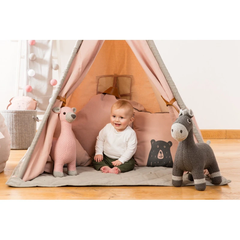 Pour une décoration moderne et douce, craquez pour cette mignonne petite biche tricotée et imaginée par Pericles. Rose poudré et grise, cette adorable petite biche est conçue de telle façon qu’elle tient debout seule, vous pourrez ainsi la poser simplement au sol ou la positionner sur un meuble. Au gré de vos envies, la biche tricotée Pericles décore la chambre de votre tout petit avec élégance et douceur. Parfaite pour une petite fille, la biche tricotée Pericles apporte à sa chambre une ambiance chaleureuse et ludique. La biche tricotée de la marque Pericles, d’une hauteur de 38 cm est dotée d’une structure intérieure en bois qui lui garantit robustesse et stabilité. La petite biche tricotée Pericles est le cadeau parfait à glisser dans votre liste de naissance !