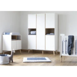 Découvrez la table à langer June de Périclès. Ses lignes scandinaves et modernes font d’elle un véritable meuble à part entière qui s’intégrera parfaitement à la salle de bain ou dans la chambre de bébé. June par Périclès possède 2 étagères de rangement, utiles pour conserver à portée de main tout ce dont vous avez besoin tel que les produits de soin, les sorties de bain, les housses de matelas à langer ou les couches. La table à langer June de Périclès possède également un grand espace de change sécurisé grâce à ses 3 côtés rehaussés.