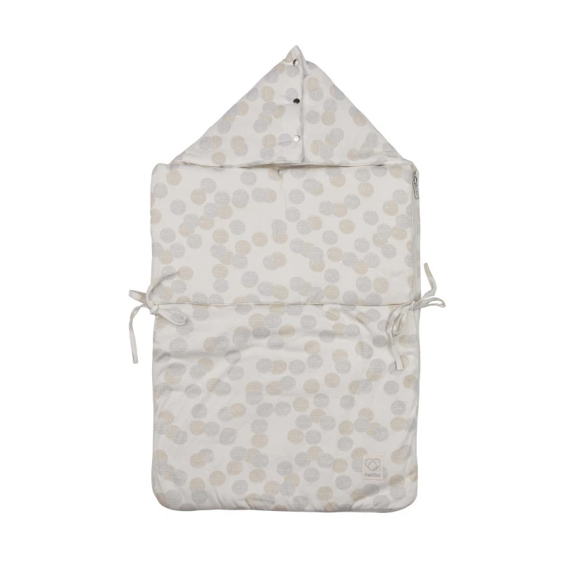 La chancelière pour siège auto Gr0+ Périclès Dots propose un imprimé sobre et mixte, composé de ronds aux couleurs douces sur fond blanc. Elle est réalisée avec une enveloppe 100 % coton agréable au toucher, et saura se montrer élégante avec tous les sièges autos.