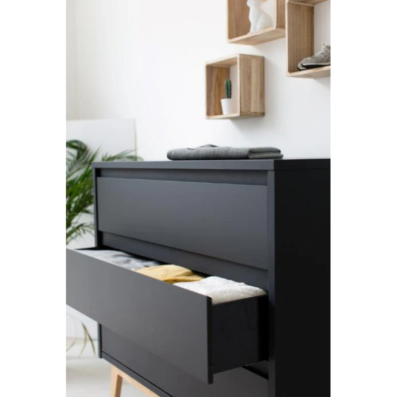 Découvrez la belle commode assortie à la nouvelle collection Pure noir par Périclès. Composé de 3 grands tiroirs, elle accueillera toutes les petites affaires de bébé et permettra de les garder à portée de main. La commode Pure conçue par Périclès est également très pratique car vous pourrez la transformer en commode à langer grâce à son plan à langer inclus. Vous pourrez ainsi profiter d’un espace de change confortable et sécurisé pour vous occuper de bébé en toute sérénité. Dans des tons noirs et naturels avec des lignes droites et épurée, ses teintes modernes et élégantes sauront s’accorder à tous les intérieurs et seront appréciés tant par les filles que par les garçons ! Petit plus, la fermeture des tiroir de la commode pure est silencieuse et amortie.