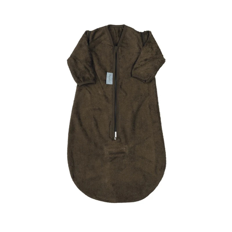 La gigoteuse naissance avec manches Périclès Moss est réalisée dans un très beau tissu marron et peut être lavée facilement en machine à 30 °C.