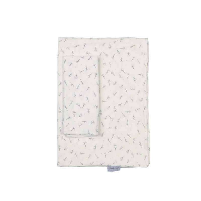 La housse de couette pour lit Périclès Misty, livrée avec sa taie d’oreiller coordonnée, se lave facilement en machine à 30 °C et est composée à 100 % de coton certifié Oeko-Tex®, pour garantir le respect de la peau délicate et de la santé de votre bout de chou.