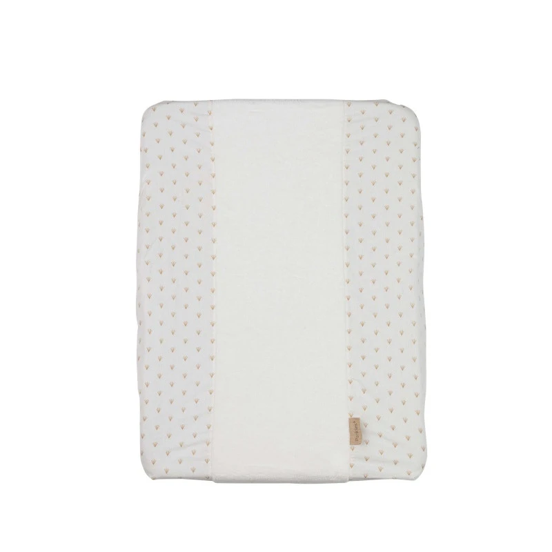 La housse de matelas à langer Périclès Gold allover /Off white associe un très beau tissu blanc à bouclettes au centre et un coton blanc orné de délicats motifs de chaque côté. Avec sa forme élastiquée, elle s’installe facilement sur la majorité des matelas à langer de taille standard, et se retire tout aussi simplement pour être lavée en machine à 30 °C. De plus, vous avez l’assurance qu’elle ne glissera pas, même si votre bébé gigote.