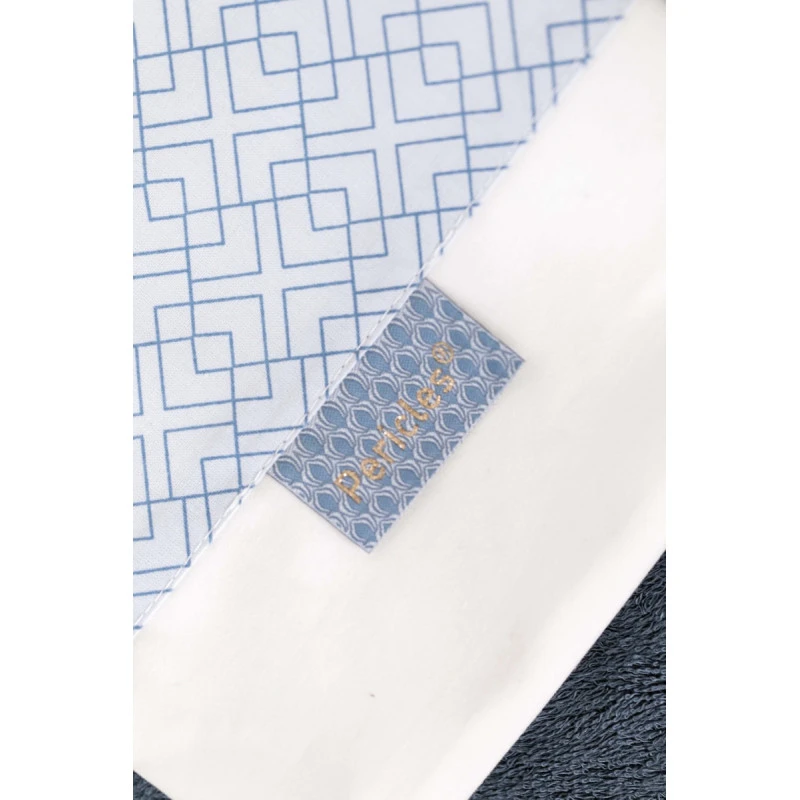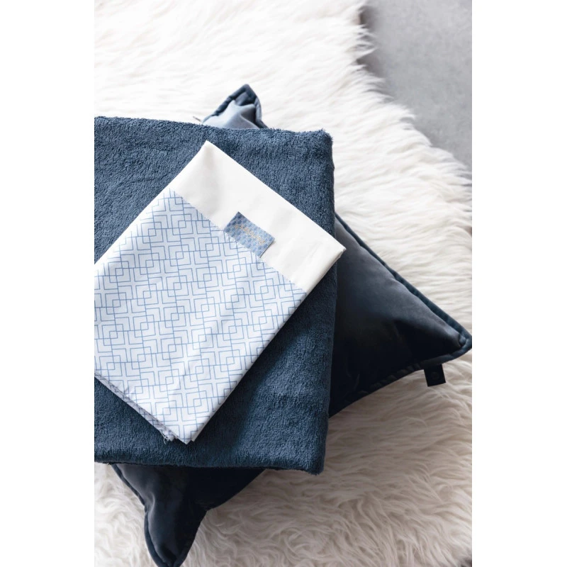 La parure de berceau Périclès Steel allover est fabriquée en coton de très haute qualité, certifié Oeko-Tex® pour garantir le respect de la peau délicate et de la santé de votre bout de chou. Le drap plat blanc est décoré, sur le revers, de jolis motifs géométriques bleu-gris sur fond clair qui lui donnent beaucoup de chic et de modernité, et il est accompagné d’une taie d’oreiller coordonnée.