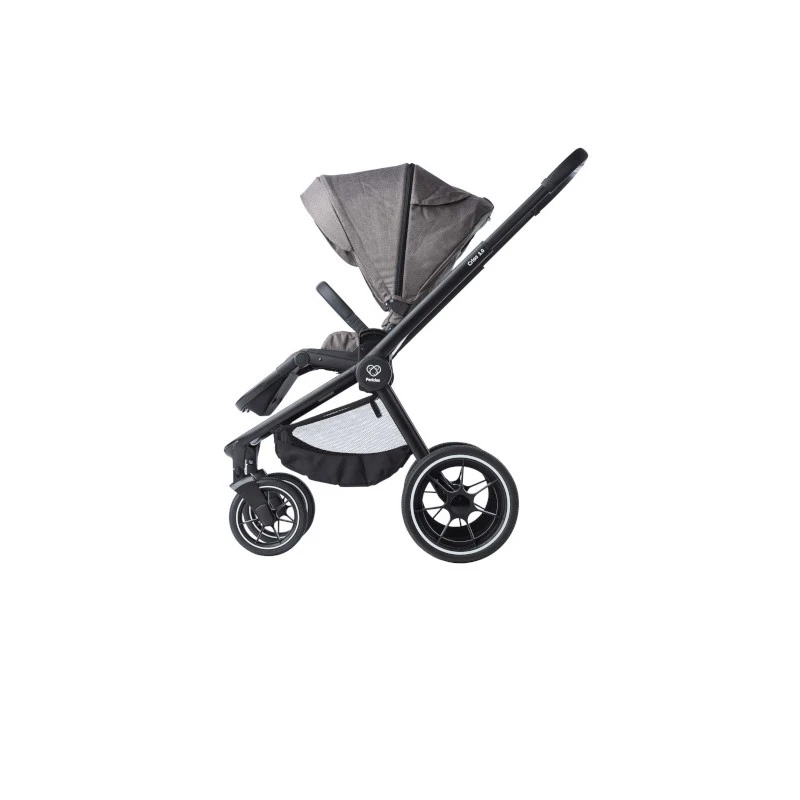 Confortable et maniable, la poussette Crios 3.0 de Périclès vous garantit une conduite douce et agréable en toutes circonstances grâce à ses pneus increvables équipés de suspensions qui absorbent tous les chocs.