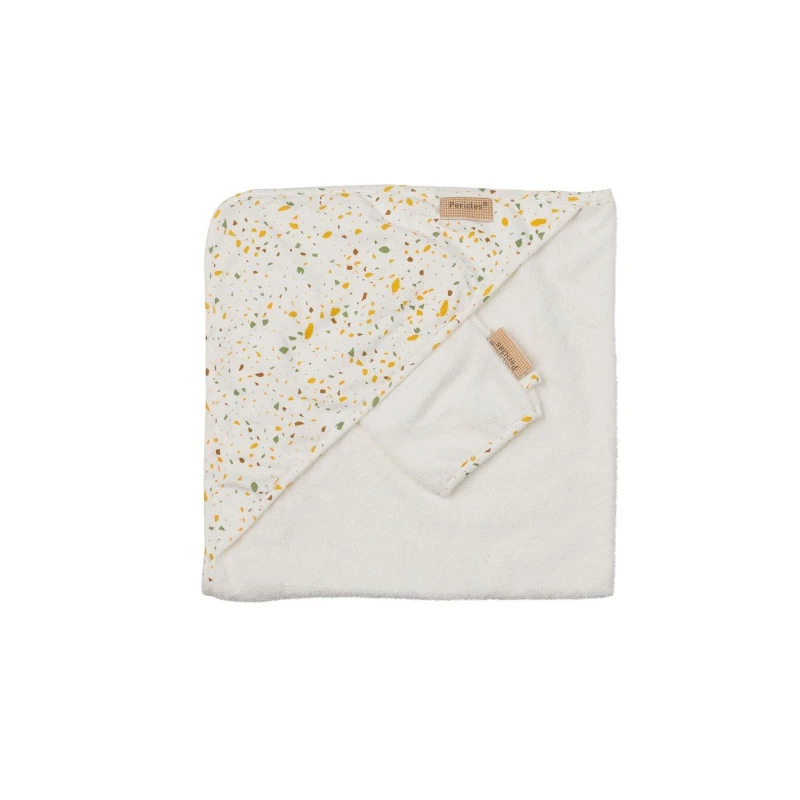Le temps du bain est fini, et votre bout de chou doit maintenant sortir de l’eau, choisissez la sortie de de bain + gant Périclès Coffee pour le sécher délicatement. C’est un vêtement facile à utiliser avec un tout petit : un grand carré qui s’enroule vite fait autour de bébé, équipé d’une capuche dans un angle pour abriter sa tête. Tendrement, vous prolongez ainsi les moments de jeu et de complicité partagée, sans stress.