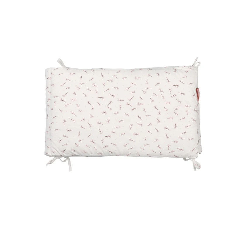 Le tour de lit Périclès Blush est réalisé dans un superbe tissu uni blanc, décoré de beaux motifs végétaux roses, et peut être facilement lavé en machine à 30°C. Comme le tissu utilisé est certifié Oeko-Tex®, vous avez la garantie qu’il respecte la peau délicate et la santé de votre enfant.