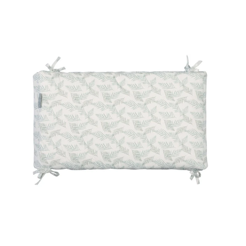 Le tour de lit Périclès Moss est réalisé dans un superbe tissu uni blanc, décoré de superbes motifs végétaux verts, et peut être facilement lavé en machine à 30°C. Comme le tissu utilisé est certifié Oeko-Tex®, vous avez la garantie qu’il respecte la peau délicate et la santé de votre enfant.