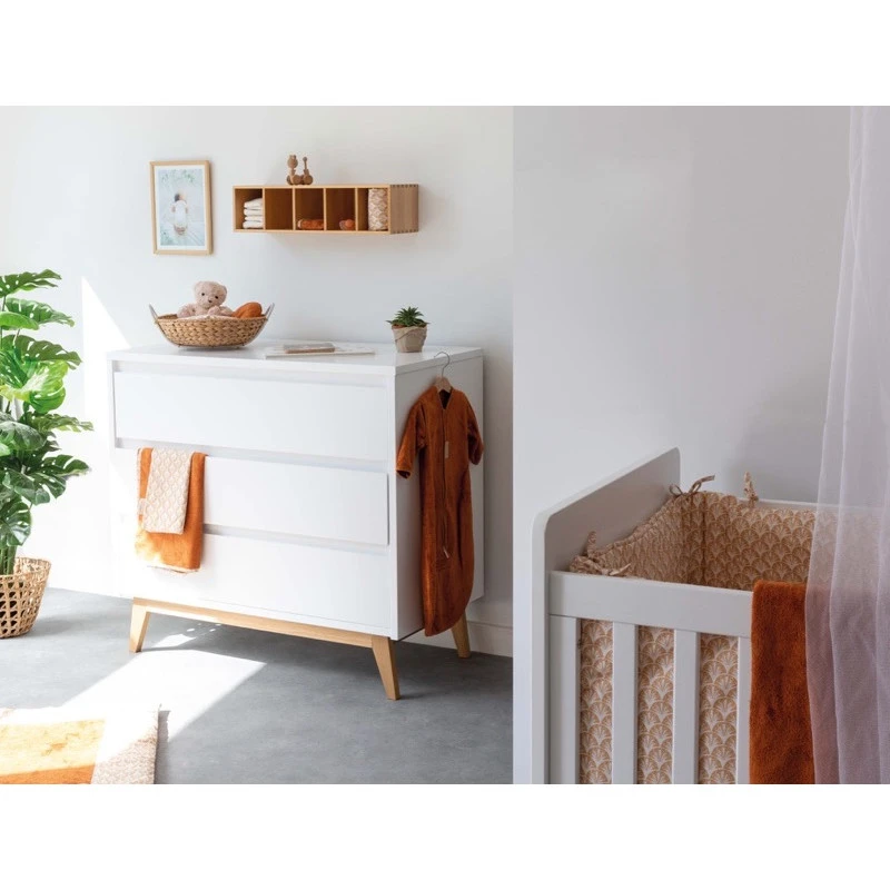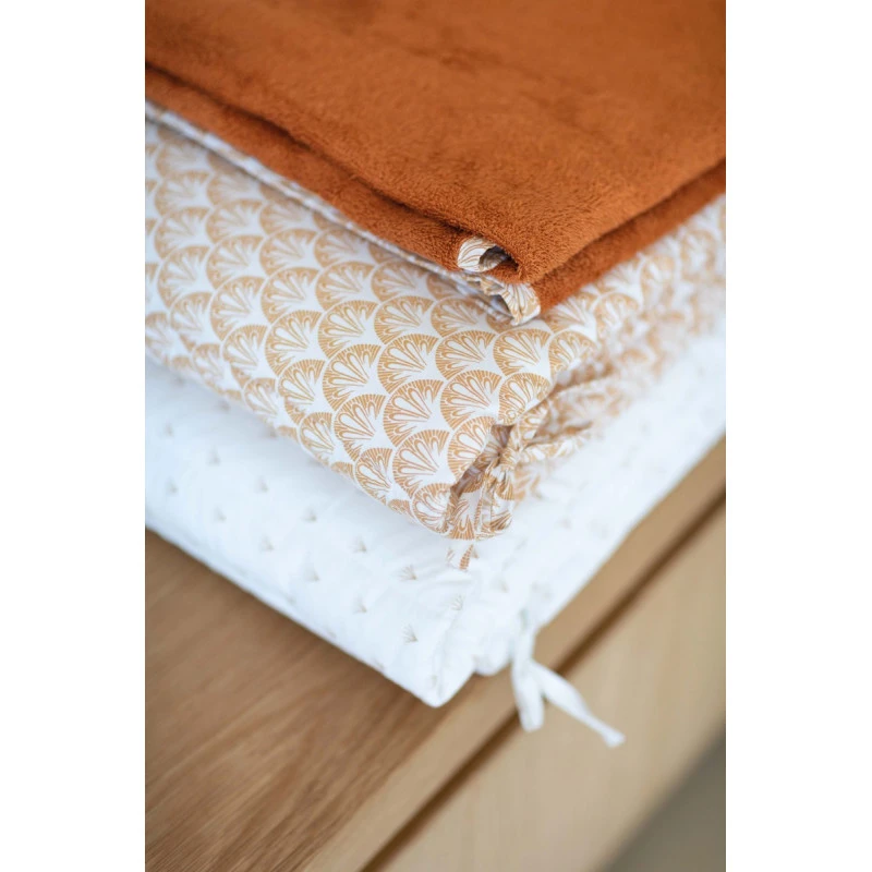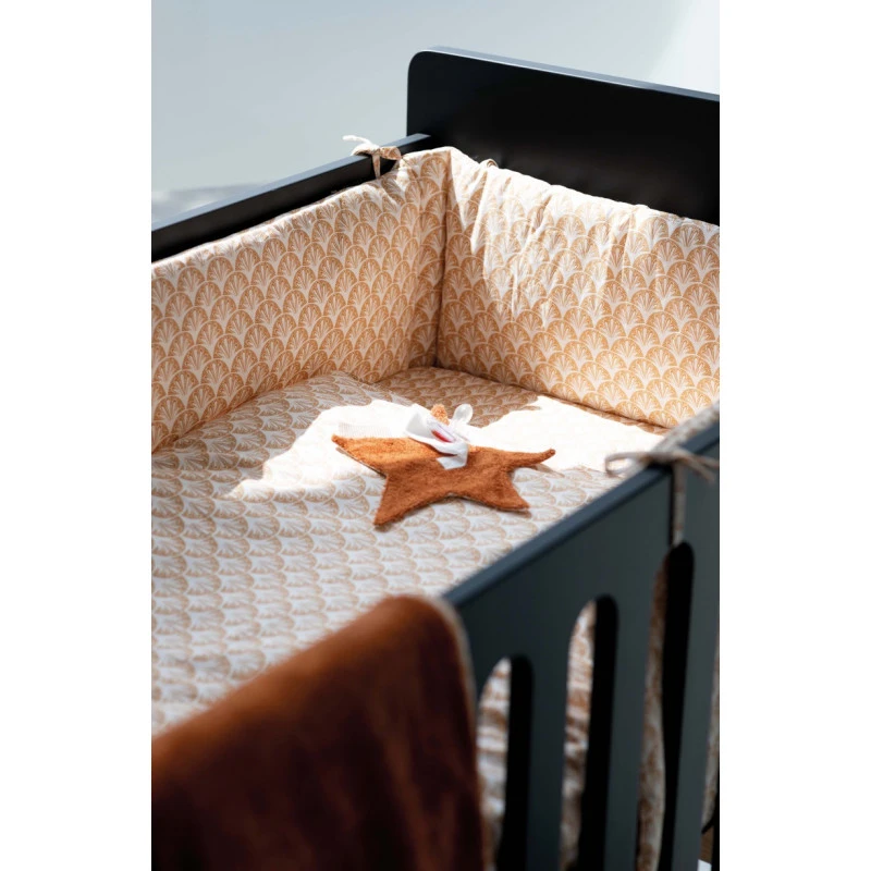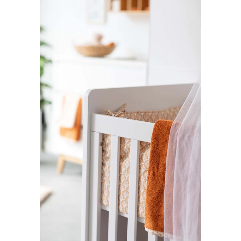 Vous aimez les couleurs chaudes et naturelles, les ambiances apaisantes et végétales ? Vous allez adorer ce superbe tour de lit Périclès Terra Allover. Il s’adapte aux lits de dimensions 60 x 120 cm ou 70 x 140 cm, s’accroche facilement grâce aux liens en tissu qui doivent être solidement noués, et évite que votre bout de chou se tape contre le bois de son lit ou bien encore se coince un membre dans les barreaux. Le tour de lit contribue également à réduire l’espace autour de votre bébé, pour mieux s’adapter à sa petite taille, et lui créer un doux cocon protecteur.